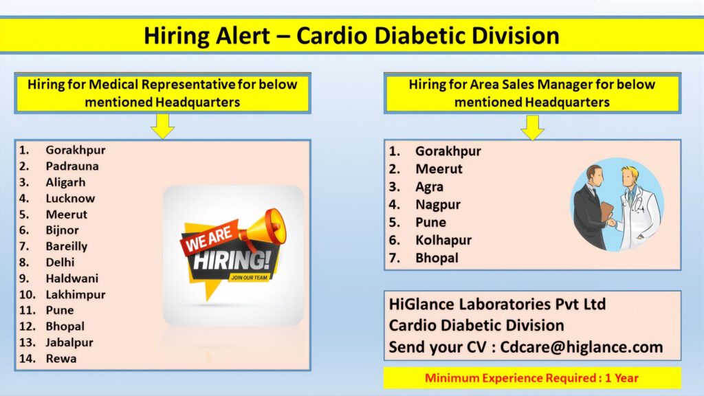 • HIGLANCE LABORATORIES PVT LTD- VACANCY (M.R👉 U.P, M.P, UTTARAKHAND, MAHARASHTRA & DELHI) (ASM👉 U.P, MAHARASHTRA, M.P)
