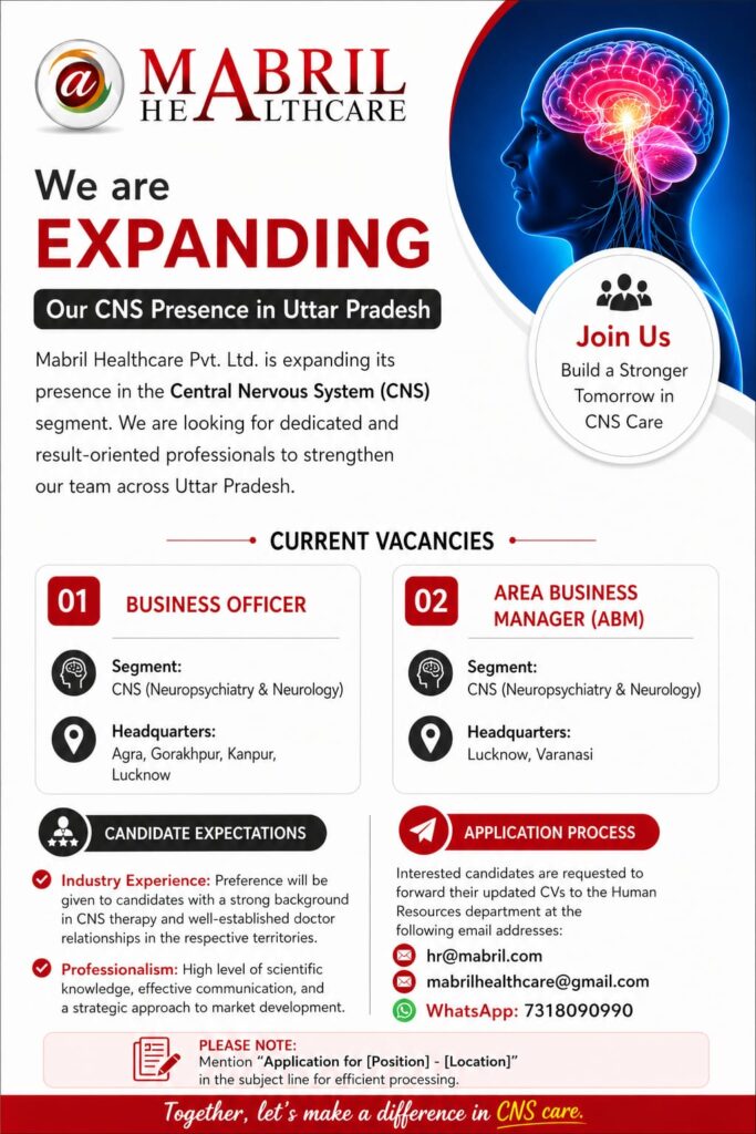 • MABRIL HEALTHCARE- VACANCY (M.R👉 AGRA, GORAKHPUR, KANPUR, LUCKNOW) (ABM👉 LUCKNOW & VARANASI)