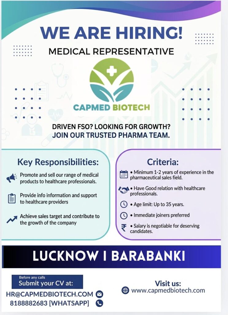 CAPMED BIOTECH- VACANCY (M.R👉 LUCKNOW & BARABANKI)